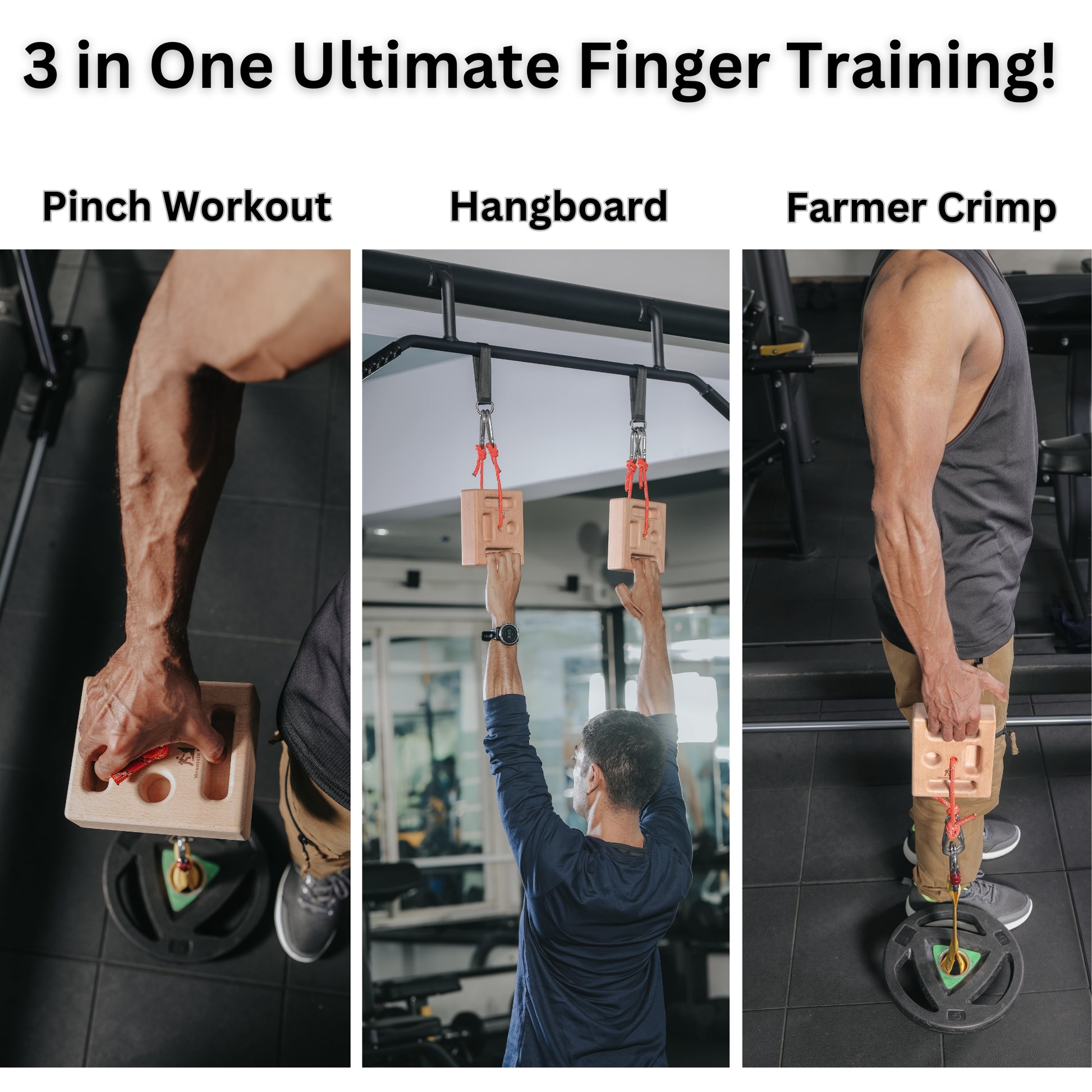 - [Perfect for gym-goers] If you frequent the gym, this hangboard is your ideal training companion. Attach it to a pull-up bar using the provided strap and perform practical hangboard exercises. You can also attach it to weight plates for pinch grip training and Farmer Crimps, making it a versatile option for gym sessions.